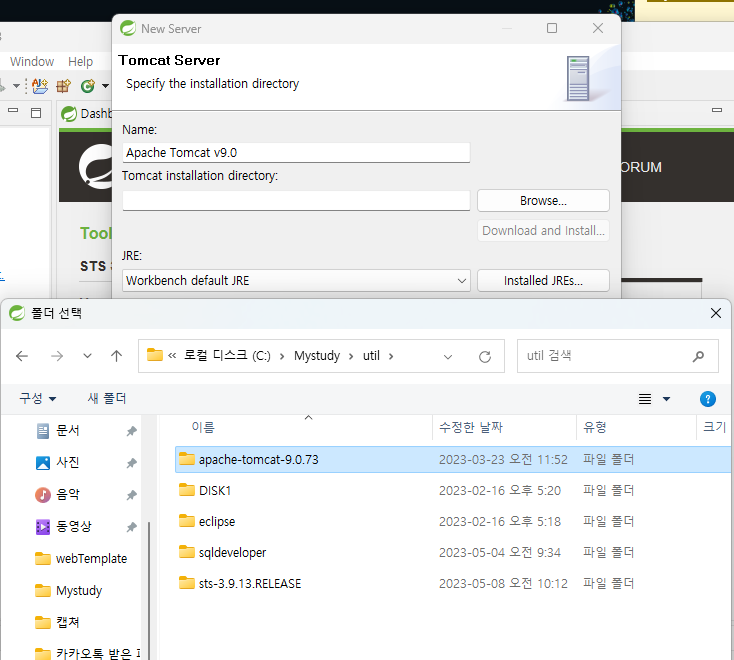 톰캣 먼저 설정(기존에 다운받아놓음)