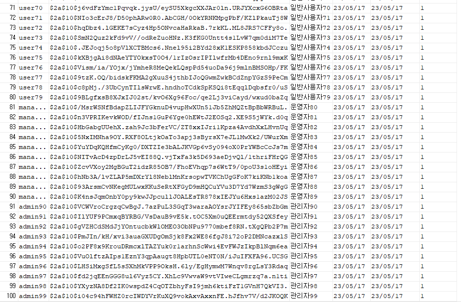 스프링 시큐리티 JDBC 간편인증/권한처리 (BCryptPasswordEncoder 클래스) 본문