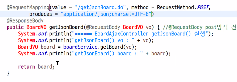 public BoardVO getJsonBoard(@RequestBody BoardVO vo) {//post방식 전달