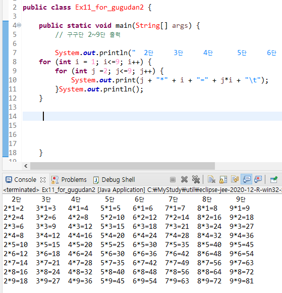 가로로 나열하는 구구단 출력은 처음이라 재밌었다 :)