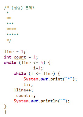 별찍기를 while로 하니 색다르고 다소 어렵게 느껴졌다.