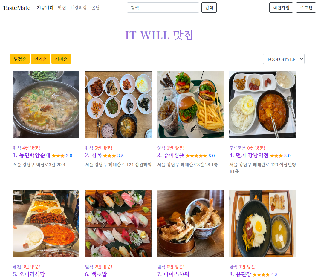 맛집 스타일별 정렬하기 / 별점순 / 인기순 / 거리순 구현하기 본문