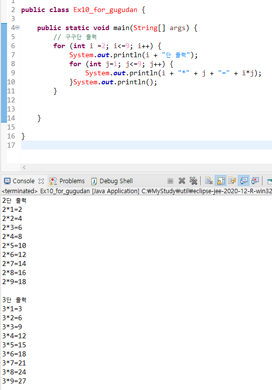 가로로 나열하는 구구단 출력은 처음이라 재밌었다 :)