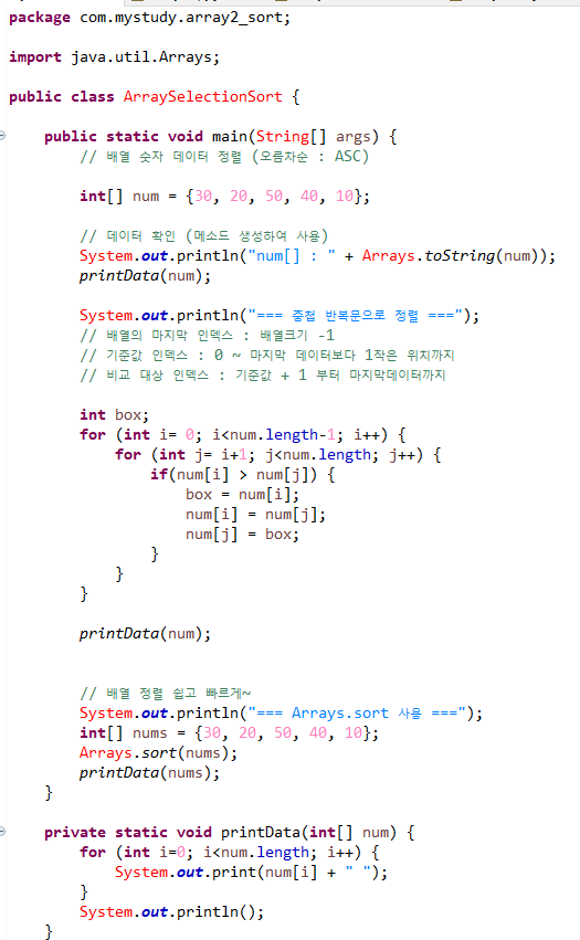 하지만 Arrays.sort() 이용하는 것이 훨씬 쉽고 빠름