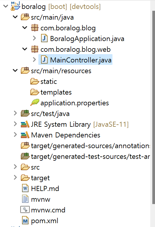 web 패키지 만들고 MainController 클래스 생성