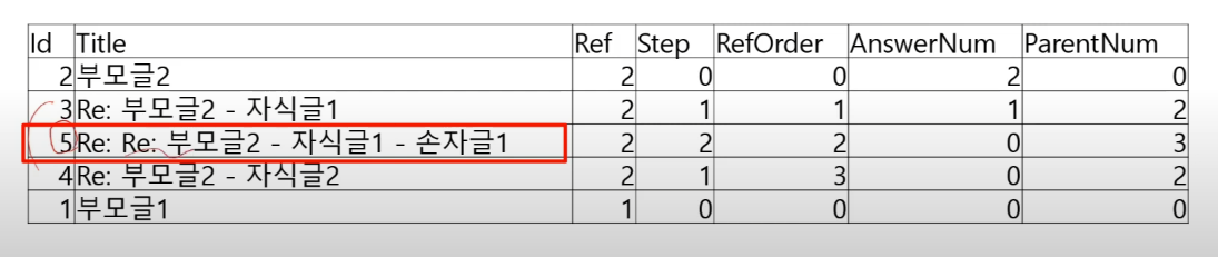 AnswerNum : 자식글 몇개인지 카운트 (0부터 카운트)