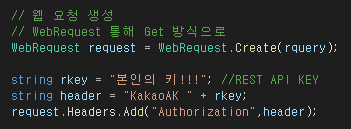 string rkey = "본인의 키 !!!!!!!!!!!!!!!!!!!!!!"; //REST API KEY