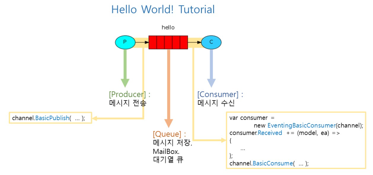 - hello 이름의 큐에서 메시지 수신