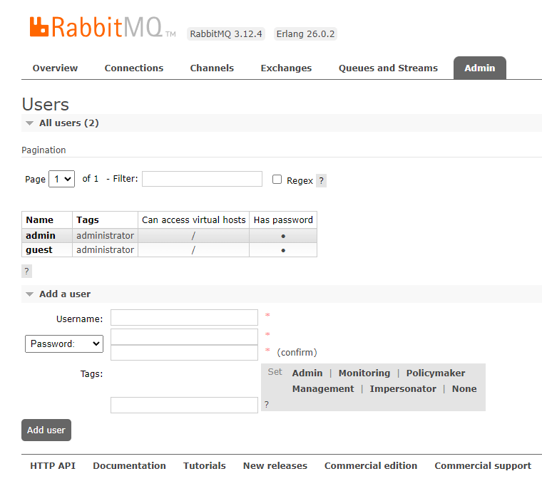 - rabbitmqctl set_user_tags admin administrator