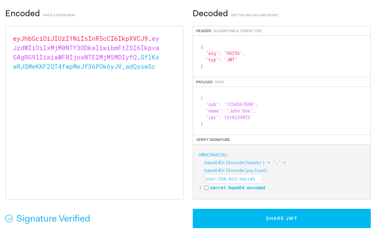3. Signature : Header과 Payload, Secrey Key를 사용하여 생성된 서명