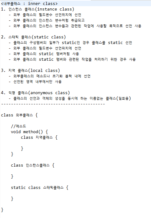 static 클래스 내부에 있는 메서드가 static이 아닌 경우에는 내부클래스 객체 생성해서 메서드 사용