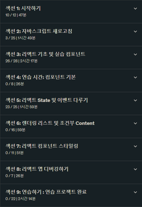 진짜 다 들으면 리액트 어느정도 할 수 있을 것 같긴 한데...