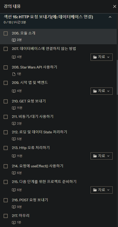 다음주부터 프로젝트 예정이라 급 섹션15 (HTTP 요청보내기) 로 넘어갔다.