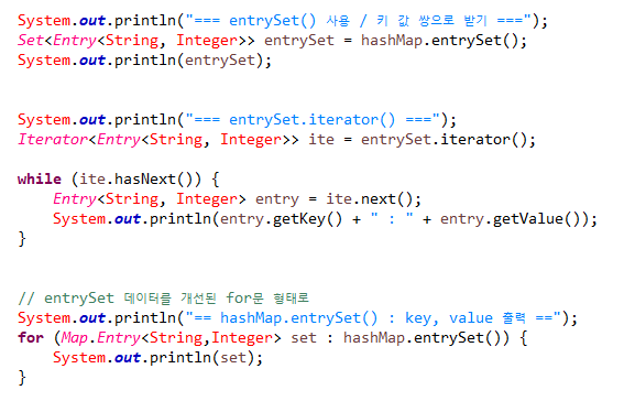 Entry안에 넣으면 getKey, getValue 사용 가능
