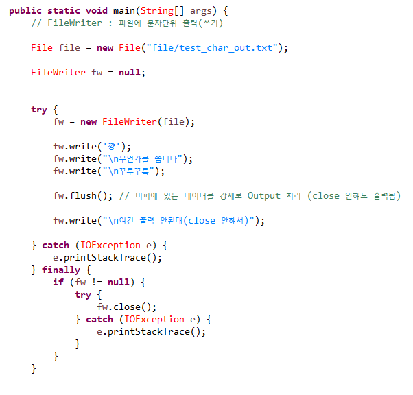 close 하지 않아도 버퍼에 있는 것을 밀어낸다.