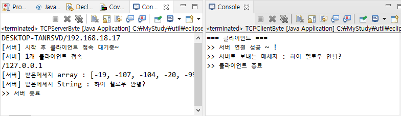 서버와 클라이언트 결과를 동시에 볼 수 있었다.